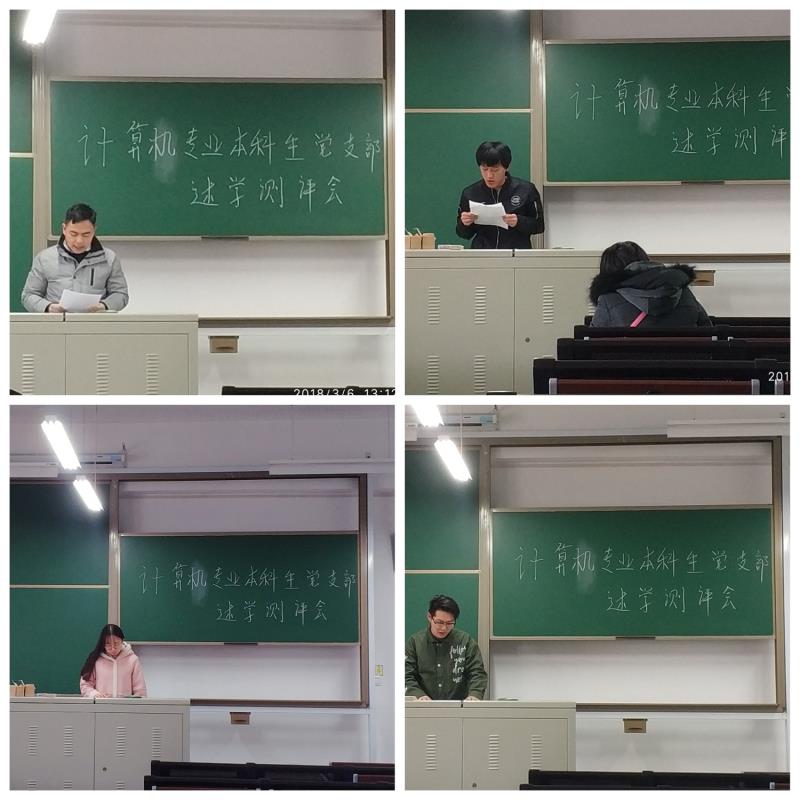 为进一步加强对大学生党员的教育管理,增强大学生党员的党性党风党纪教育,保持党员队伍先进性和纯洁性,更好地发挥大学生党员的先锋模范作用,新学期伊始,根据学校统一部署和安排,电信学院计算机专业本科生党支部于2018年3月6日在学D412召开学生党员述学测评会。