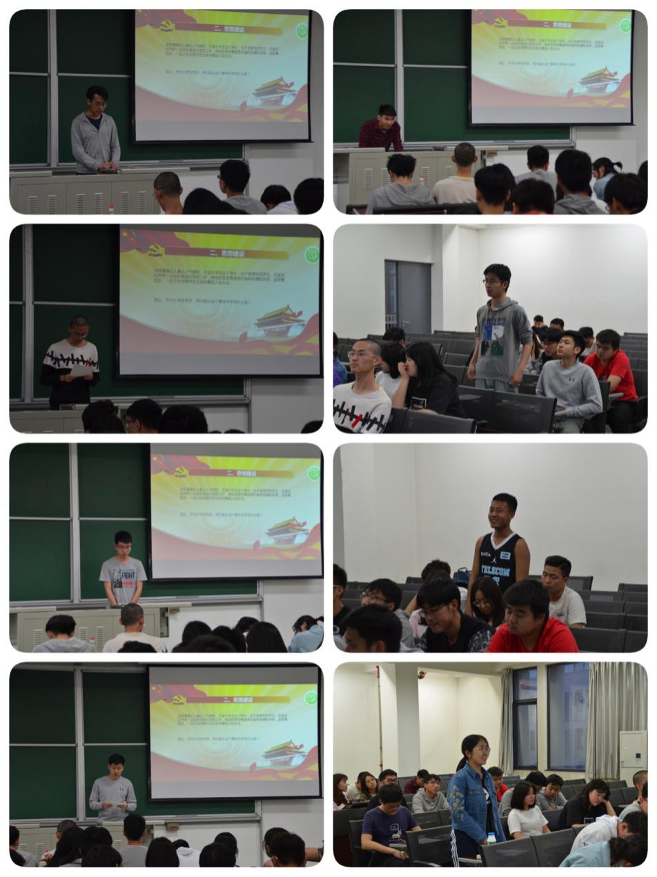 4月27日晚上18:30,电信学院自动化专业本科生党支部在基础楼A座115教室召开高级党课学习交流会,支部党员及本专业参加第61期高级党课培训班学员参会,会议由支部党员王陆天主持。