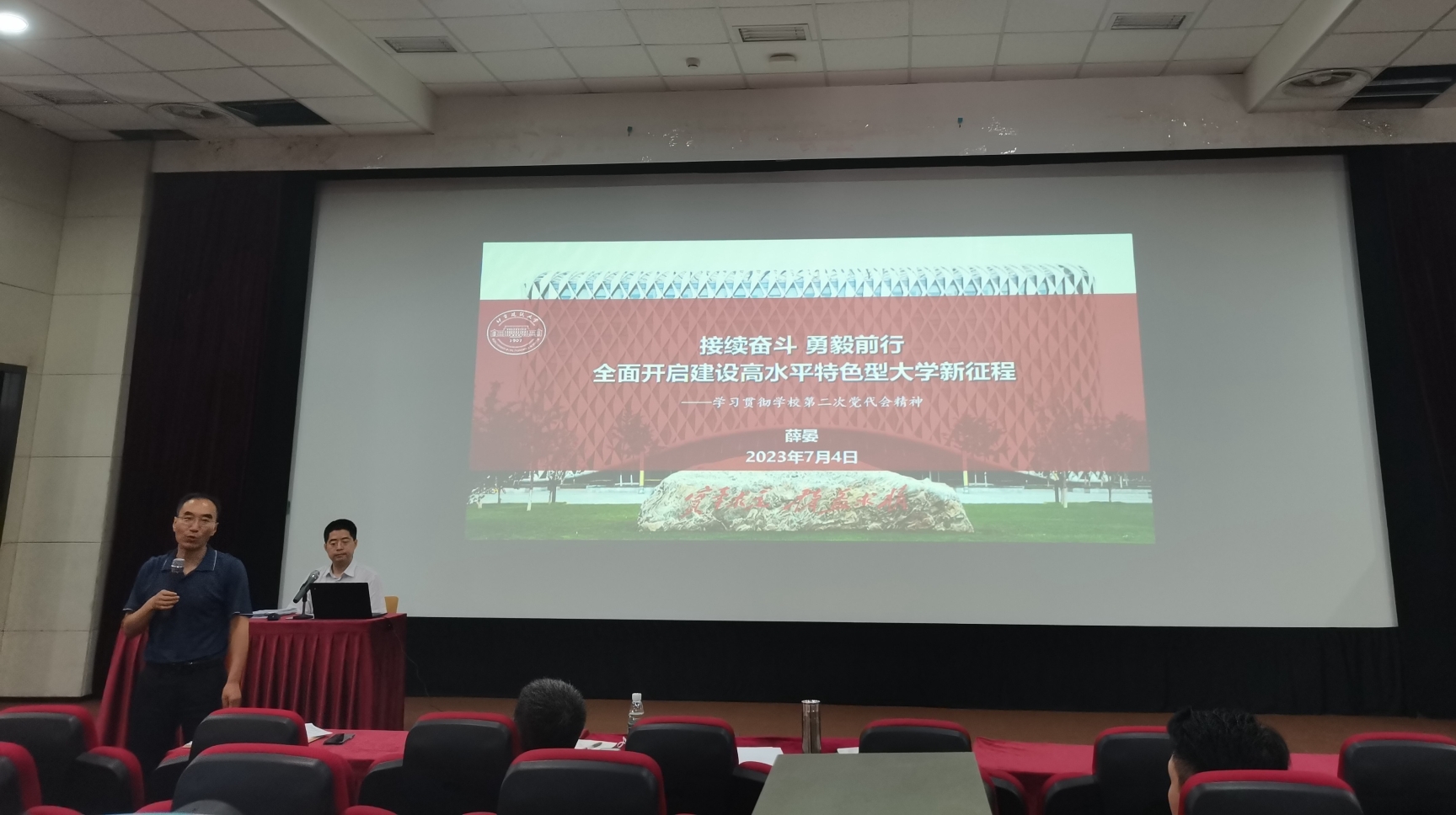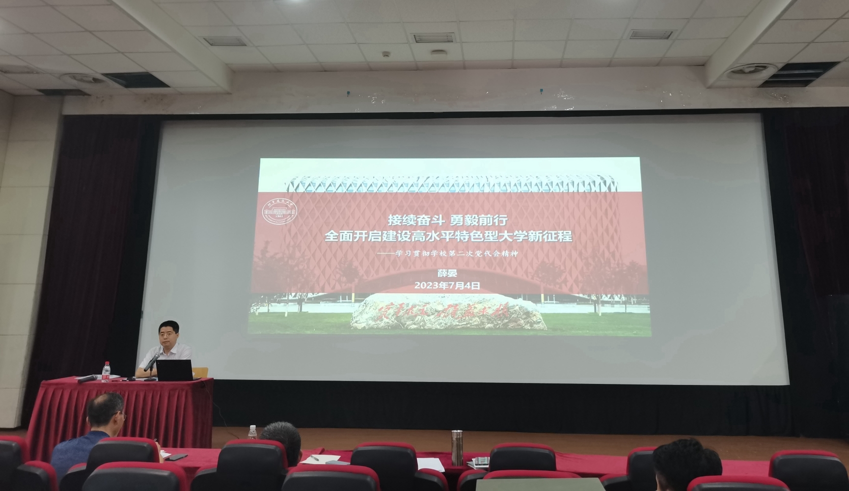 薛晏向与会成员清楚阐述了学校过去五年取得的辉煌成就,现阶段学校发展面临的风险挑战和难得机遇,下一阶段在新时代新征程中学校发展的新目标新使命,以及如何谱写高水平特色型大学建设新篇章。