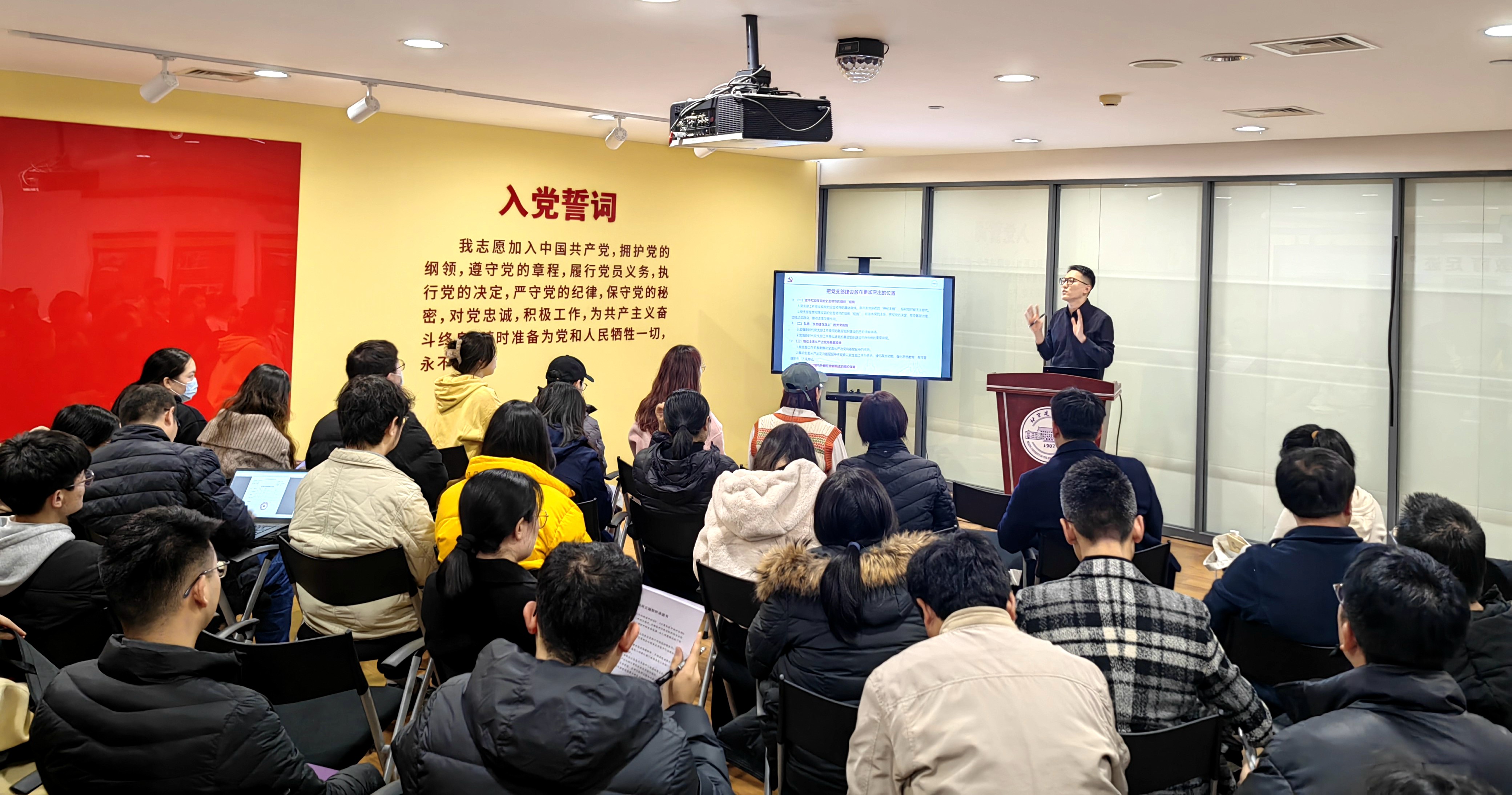 组织部秦岭对《中国共产党支部工作条例(试行)》和《中国共产党普通高等学校基层组织工作条例》进行解读,详细介绍了党支部的地位作用、工作基本原则、基本任务、组织生活、支部委员会建设等内容,大家进一步明晰了新时代党支部工作任务和党支部书记及委员该有的素质能力。