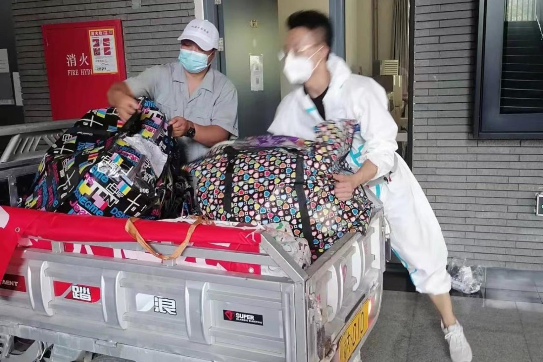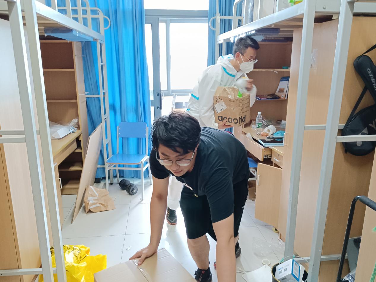 在寝室里打包的过程中,学生党员们与毕业生们进行视频连线,确认所需要打包的物品。学生党员们在寝室里上下奔走,爬高俯身,耐心地反复确认每一处细节,精确地定位每一件物品,争取做到一件不漏,确保每一段珍贵的回忆都能回到毕业生的手中。