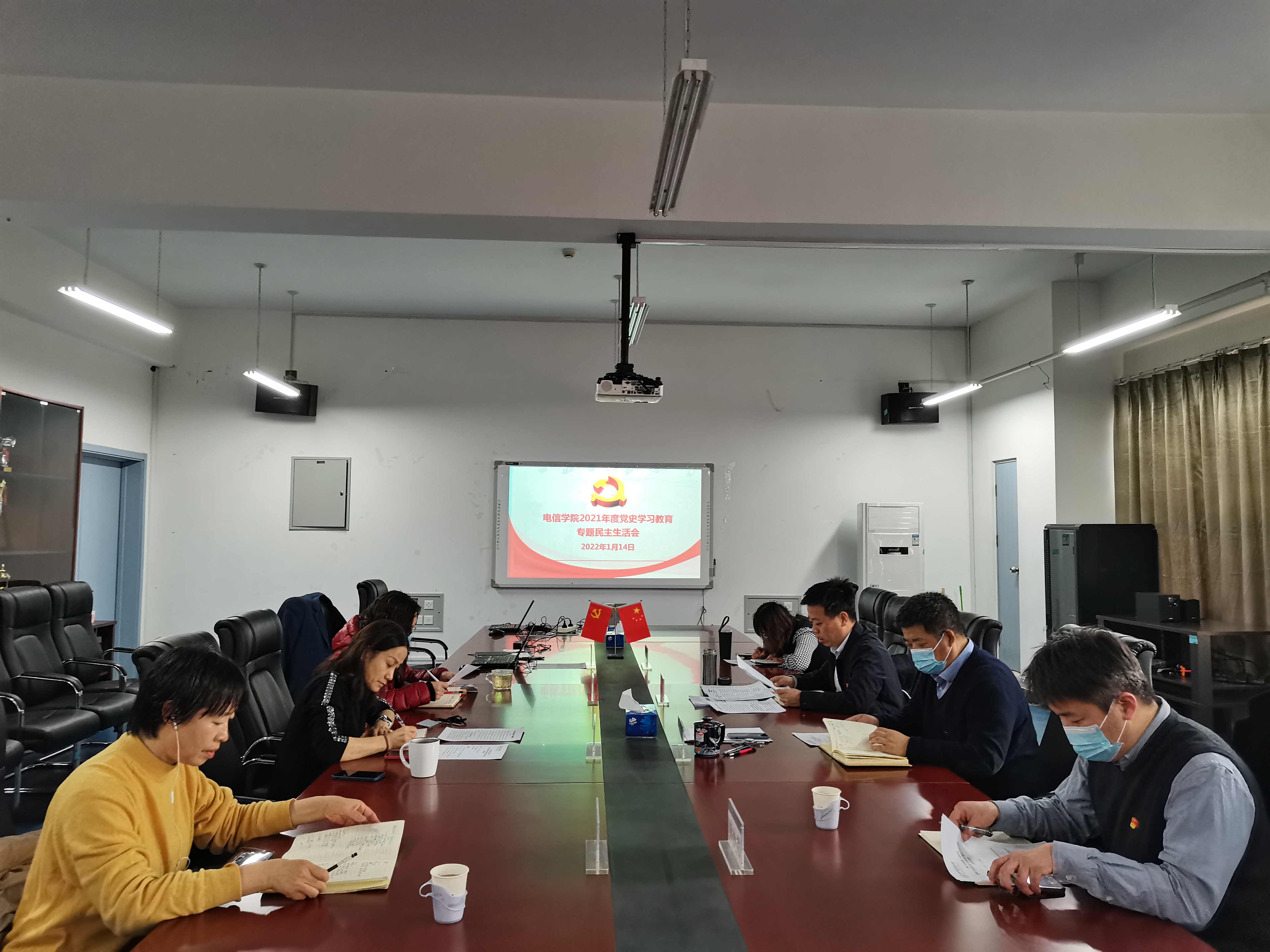 2022年1月14日上午,电信学院党委在学D542会议室召开党史学习教育专题民主生活会。学院党委书记吴建国主持会议,第三巡回指导组成员和纪检监察办公室工作人员共同出席会议。