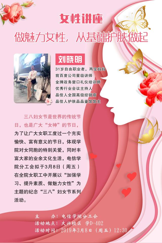 【活动预告】庆三八节女性讲座——做魅力女性,从基础护肤做起