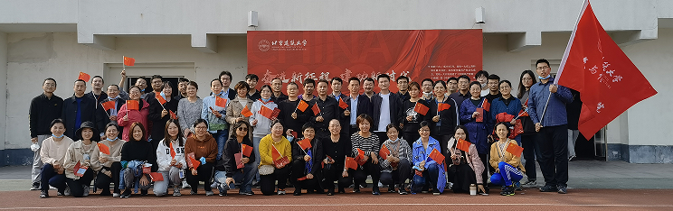 全体教职工在院旗指引下兴致勃勃、意气风发、携手同行,沉浸在校园美丽的秋色中,并在活动途中深入交流,形成一道与自然和谐相处的风景线。