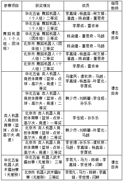 11月10日-12日,由北京市教育委员会、天津市教育委员会、河北省教育厅、山西省教育厅、内蒙古自治区教育厅共同举办,北京信息科技大学承办的华北五省(市、自治区)大学生机器人大赛在首都体育学院开赛,来自清华大学、北京大学、华北电力大学、雏鸟app 等71所高校1800余名师生在8大类14个小项中展开了的激烈比拼。我校电信学院代表队共斩获26项大奖,其中华北五省(市、自治区)奖13项,北京市级奖13项。