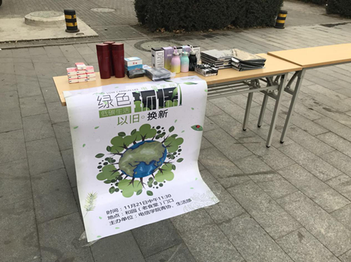 为加深同学们对环境保护的认识,使饮料瓶、旧书本更好地回收并循环利用,同时号召大家爱护宿舍环境,由电信学院团委学生会主办的“环保你我同行--以旧换新”公益环保活动于11月21号在和园食堂北门面向全校同学展开。