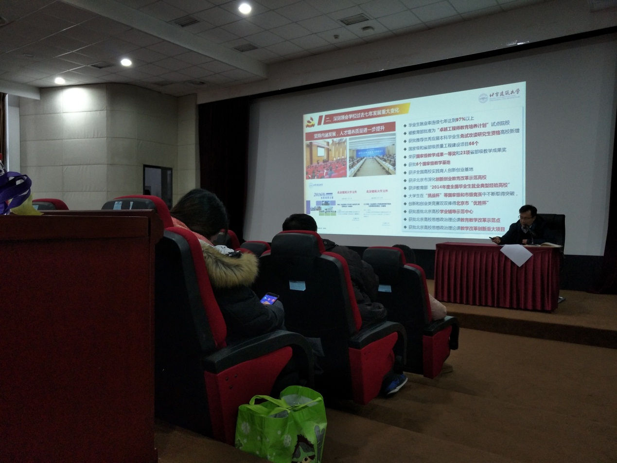 第三部分:坚持以习近平新时代中国特色社会主义思想为指引,开启学校建设发展新征程。报告指出,当前我们正处在一个伟大的时代,首都北京发展也站在了新的历史起点上,面临着深刻转型,正全面推进“四个中心”和城市副中心建设,处在建设国际一流的和谐宜居之都的关键时期。国家深入推进“一带一路”建设、加快推进新型城镇化建设、京津冀协同发展和雄安新区建设,建筑业也正在经历产业现代化的全面转型升级。学校也步入了全面提质转型升级发展的关键时期,迈进了建设国内一流、国际知名、具有鲜明建筑特色的高水平、开放式、创新型大学新的发展阶段新的发展阶段。我们应该深刻领会学校新的发展阶段的新要求,从办学定位、人才培养目标、办学模式、学科专业布局、学校整体发展要素均进入新标准、新境界;深刻领会学校新的发展阶段必须突出和强化的办学特色,我们要继承和发扬学校的优良传统,进一步强化优势特色,坚定不移地走内涵发展、特色发展、创新发展的道路,办好社会主义大学;深刻领会学校新的发展阶段指导思想和奋斗目标,开创建设国内一流、国际知名、具有鲜明建筑特色的高水平、开放式、创新型大学新局面,为向学校远景发展目标进军奠定坚实的基础;深刻领会学校新的发展阶段承担的历史使命和未来工作部署,在新的发展阶段,建设高水平大学必须明确和坚持学校的办学使命和人才培养目标,须深入实施“六大战略”重点推进“六大工程”和“六大计划”。