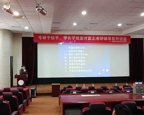 会上,副院长魏东对考研做整体介绍,朴实有力的话语坚定了大家学习与考研的决心。她从最初的建立考研的目标和信心开始,谈到考研准备过程中的方法,以及各个科目必备的知识与素养。既从大处着眼,又细致具体。她强调,我们只有坚定目标,才能充满斗志;只有拥有信心,才能实现梦想;只有平和心态,才能脚踏实地;只有借鉴了正确的方法,才能事半功倍。