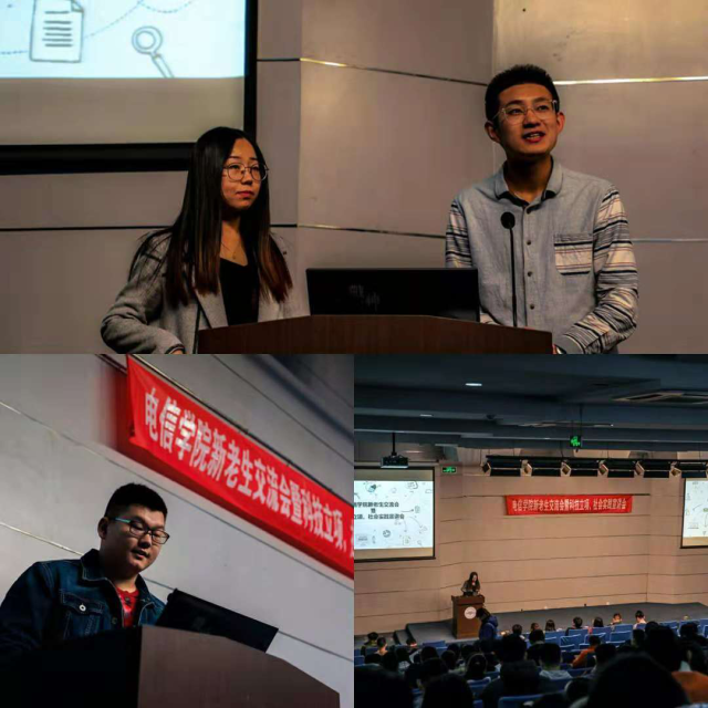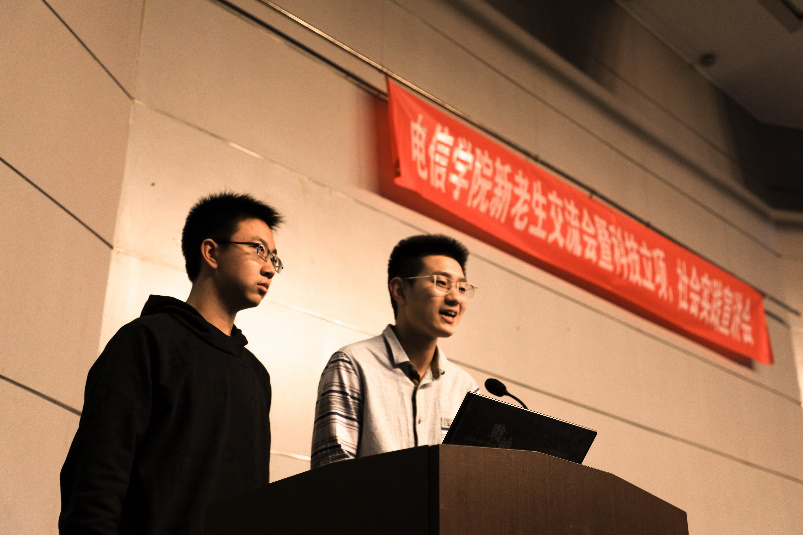 首先,研一的学长为同学们讲述了三个故事,提醒同学们“学习是学生的本分,知识是最大的财富”、“不怕尝试,成为更优秀的人”;讲述了自己在考研之路的经验,要了解自己的专业并且要有自己的目标与追求;同时,与同学们讲述了在大学生活中踏实做好每一件事,不怕承担与奉献,将平淡的大学生活过的充实起来。