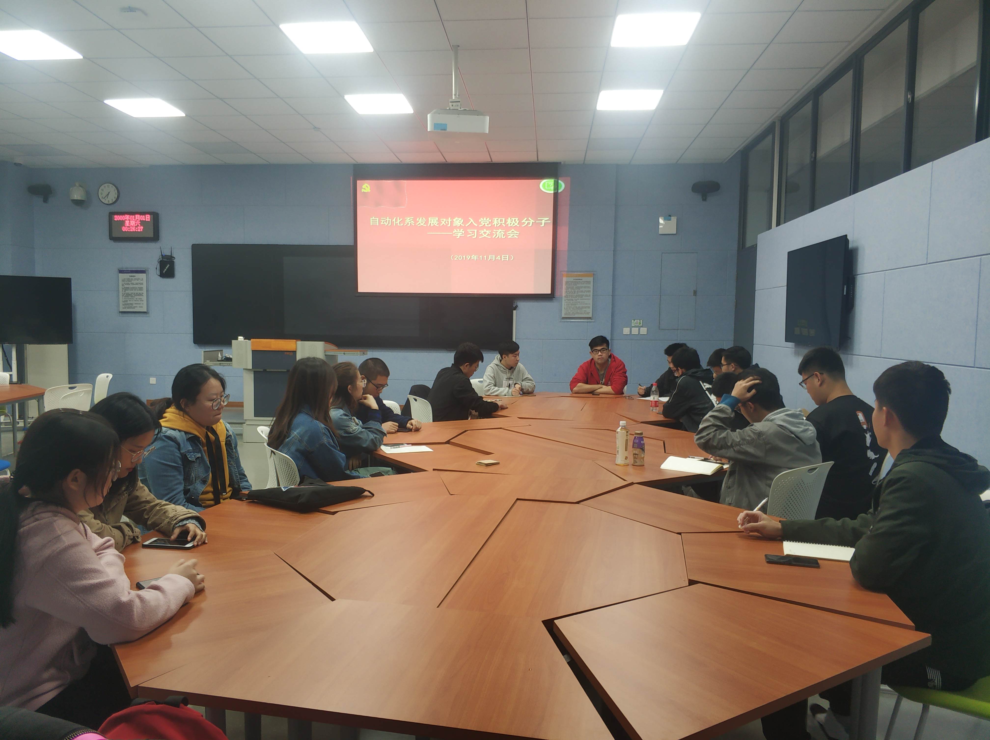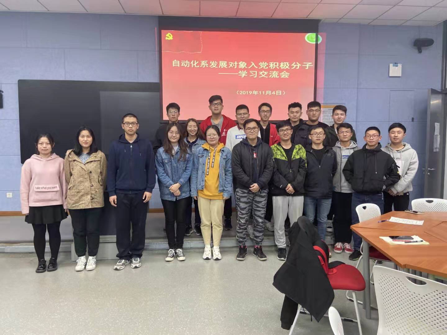 为进一步做好2019年党员发展工作,巩固入党积极分子、发展对象培训班学习成果,按照《北京高校发展党员工作程序》及学院党委本年度发展党员工作进程安排。自动化专业本科生党支部于11月4日晚在基础楼A-218教室组织第十一期发展对象、第六十四期入党积极分子召开学习交流会。本次交流会由支部学生党员马建民、陈启建同志主持,支部全体发展对象、积极分子参加。