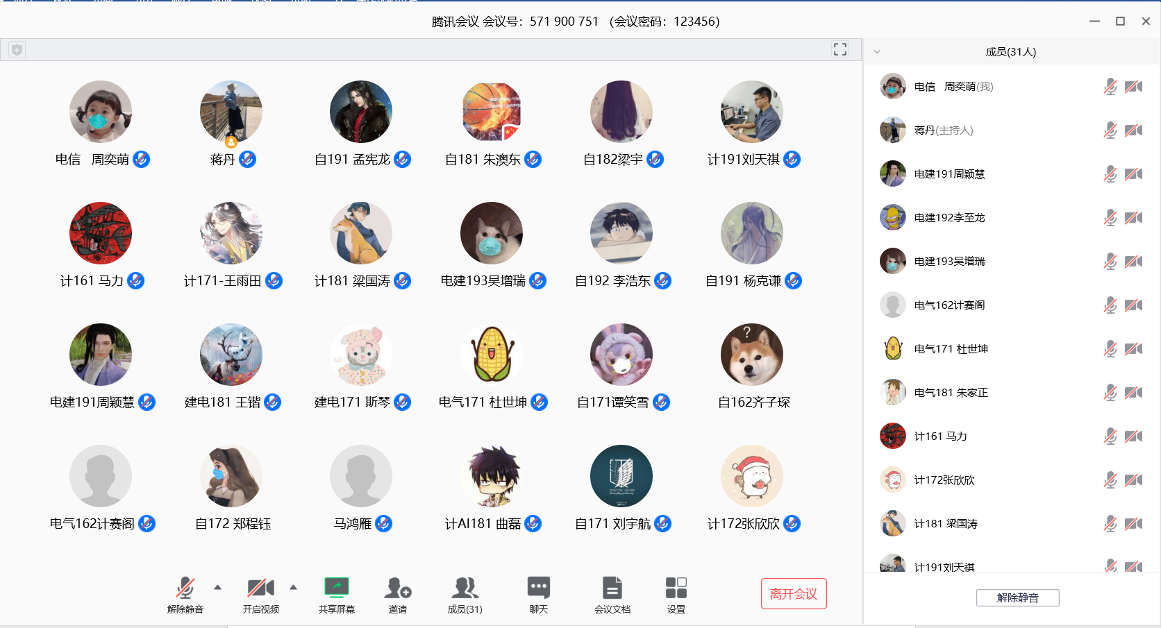 为贯彻教育部、北京市教委以及学校关于新型冠状病毒疫情防控工作的相关指示,落实好“停课不停教,停课不停学”的教学政策,保障在线教学工作顺利展开。3月10日晚上19:30,电信学院延期开学期间第一次学生信息员视频会议顺利召开,党委副书记关海琳、副院长马鸿雁、全体辅导员、教务员,以及各班学生信息员参会。教务员蒋丹老师主持了本次座谈会。