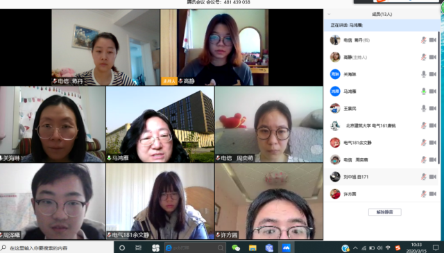 为进一步做好疫情防控工作,全面保障疫情期间湖北地区学生的在线教学质量,持续推进做好延期开学 “停课不停教,停课不停学”,3月15日上午,电信学院第三次视频连线慰问在湖北地区的6名学生。教务、学工协同,了解掌握学生最新的生活防疫情况,为其目前在线学习中出现的问题和困惑提供解决方案。学院党委副书记关海琳、教学副院长马鸿雁、学院教务员和辅导参加慰问。会议由关海琳主持。