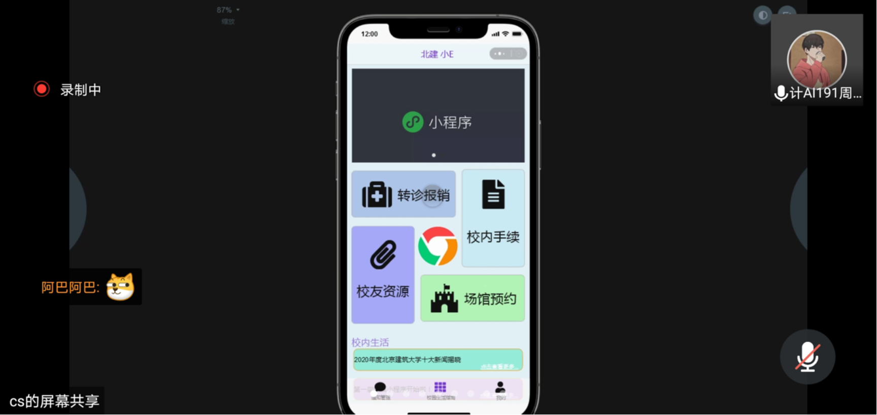 产品原型设计线上答辩交流会是电信学院微信小程序应用开发大赛的第三阶段,各个小组通过之前阶段的线上学习,设计出产品原型并参加答辩。本次线上答辩交流会检验了同学们一个星期以来的学习进度与学习成果,并且给同学们创造了一个互相学习、互相交流的平台,便于同学们更好地进行交流与设计,为接下来的小程序应用开发做好准备。