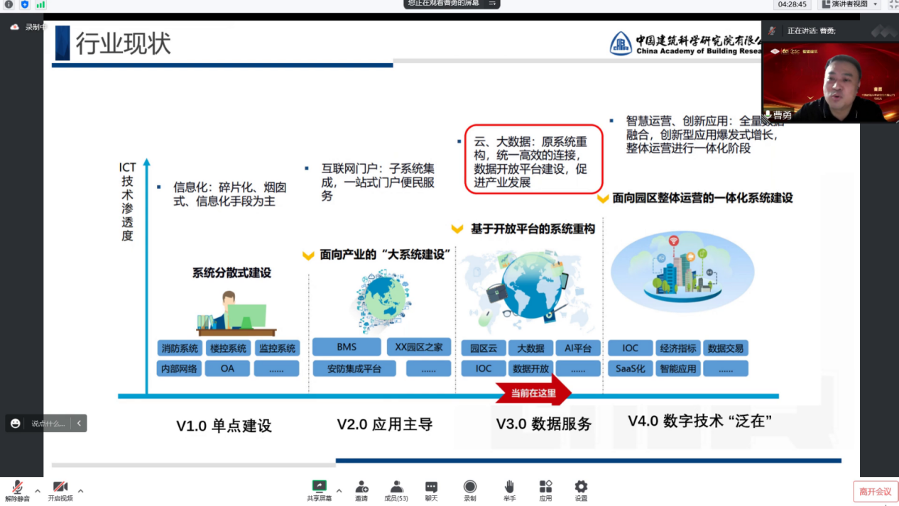 最后,中国建筑科学研究院有限公司曹勇研究员做了名为“基于云服务的建筑能效运营技术体系”的报告。建筑中一直存在着“重建设轻运营”的问题。建筑内子系统数量多、种类庞大,且不同系统使用不同工业总线协议、各子系统独立运行,系统间数据无法共享,无法进行数据联动及智能决策。利用项目端边缘控制器计算,服务分析端基于云服务的能效运营中心通过接入建筑系统的运维数据,构建建筑运维智慧大脑,通过数据集成、数据预处理、训练预测、数据仓库、分析挖掘,从而实现建筑能效运营服务管理控制新模式。
