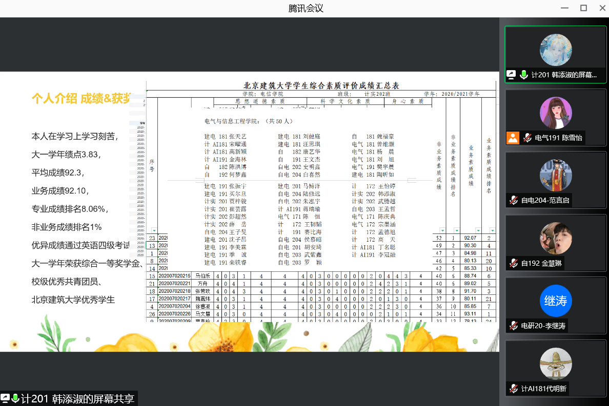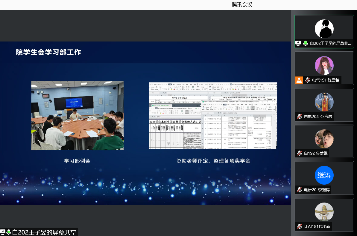 为深入学习贯彻习近平新时代中国特色社会主义思想,培养德智体美劳全面发展的社会主义建设者和接班人,引导新时代首都青年学生健康成长成才,电信学院团委按照相关通知要求,积极组织此次三好学生评选工作,为做到公平公正公开,10月17日下午15:00,在腾讯会议举办线上评选答辩会。