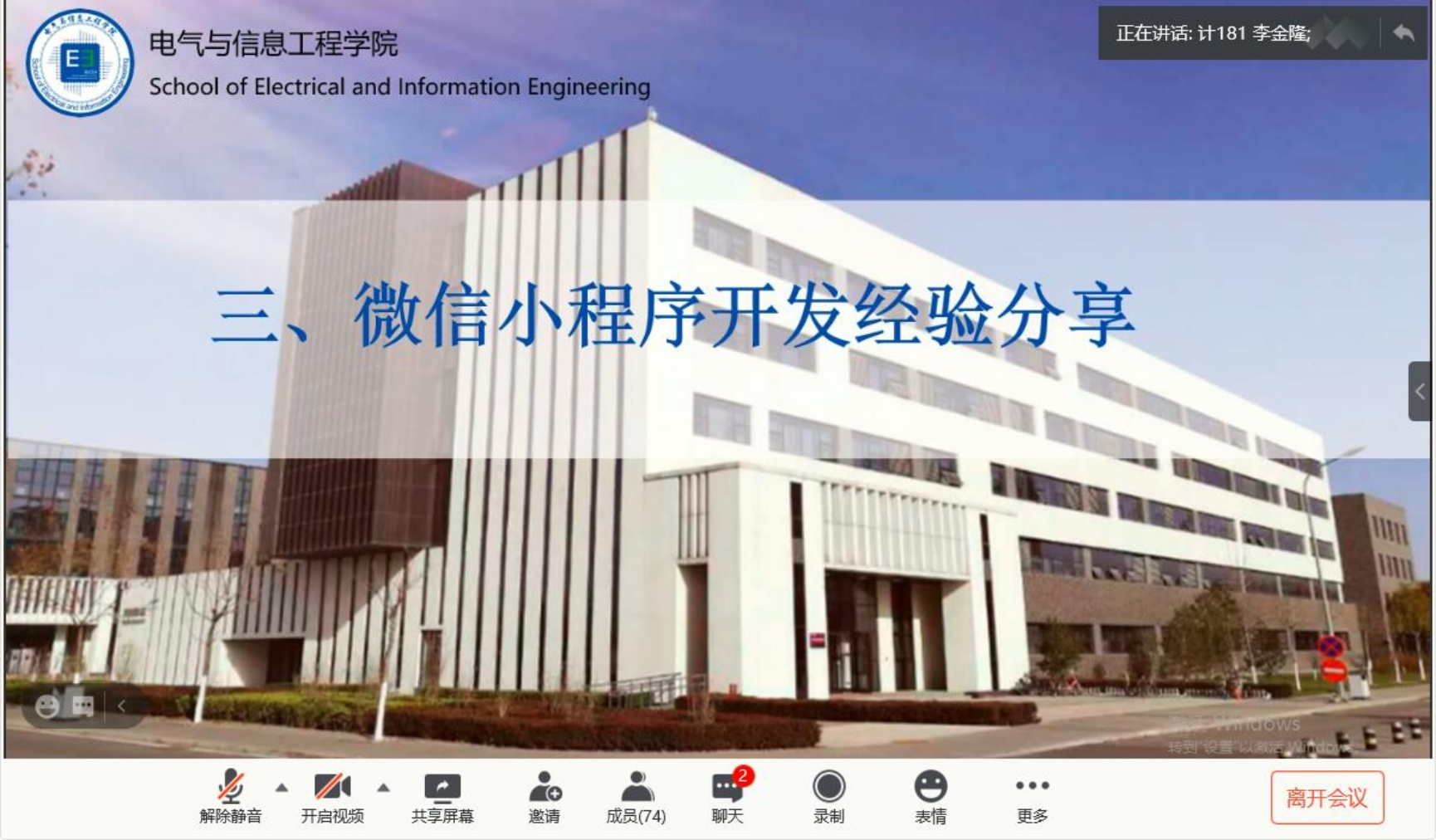 电信学院计181班学委李金隆同学从自身出发,向大家分享个人的宝贵经验。他提示参赛同学要克服畏难心理。在接触一个新事物的时候不要害怕,就算是非计算机专业的同学,也可以通过慢慢学习来完成项目设计,不用担心所学专业不符而完不成项目的工作;