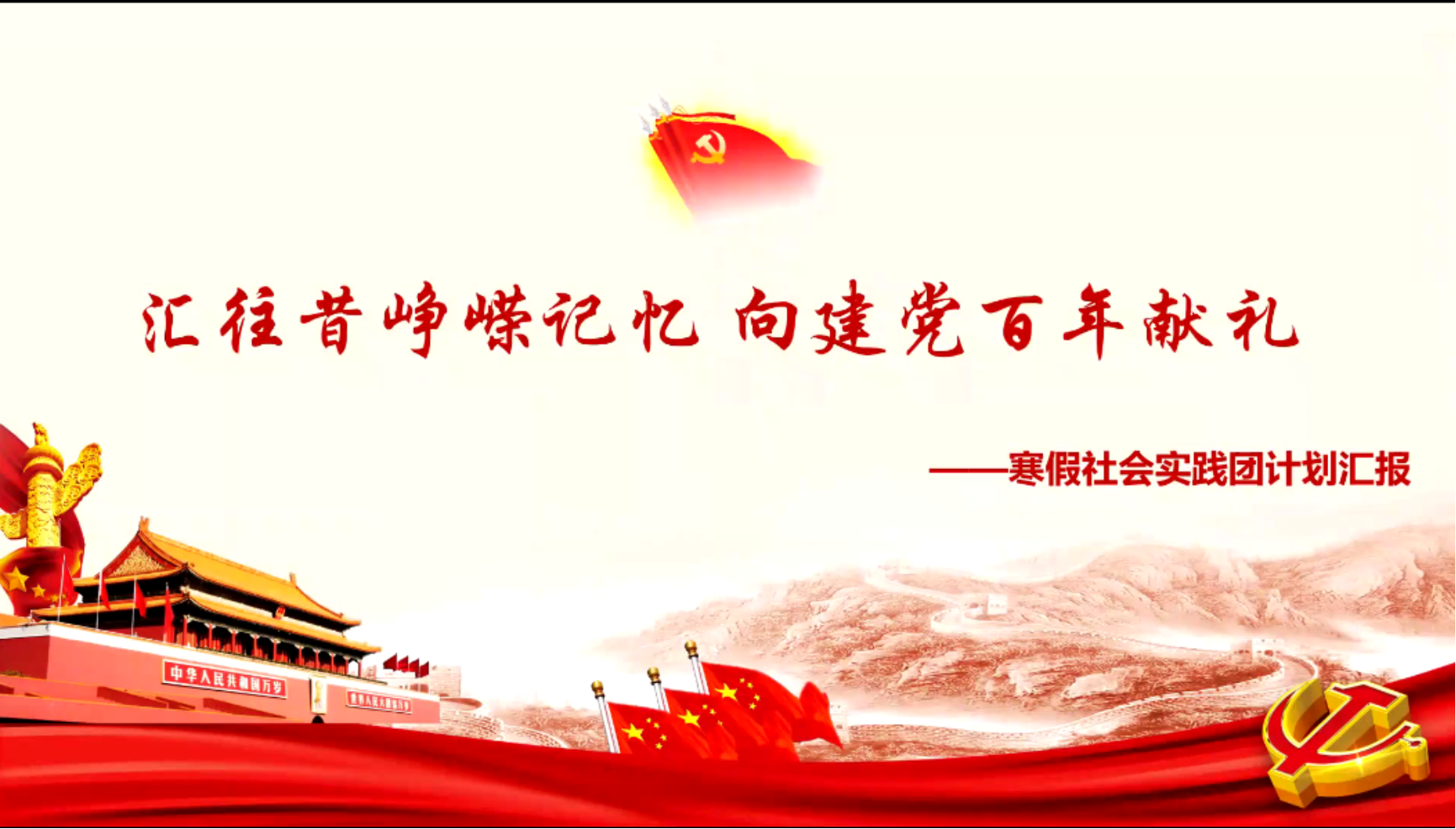 霍腾宇同学向大家介绍了“汇往昔峥嵘记忆,向建党百年献礼”实践团——该实践团由学院团委书记阚帅老师指导,共有15名成员。在2021年建党一百周年之际,结合学校寒假 “五个一”活动要求设立“汇往昔峥嵘记忆 向建党百年献礼”暑期实践项目。