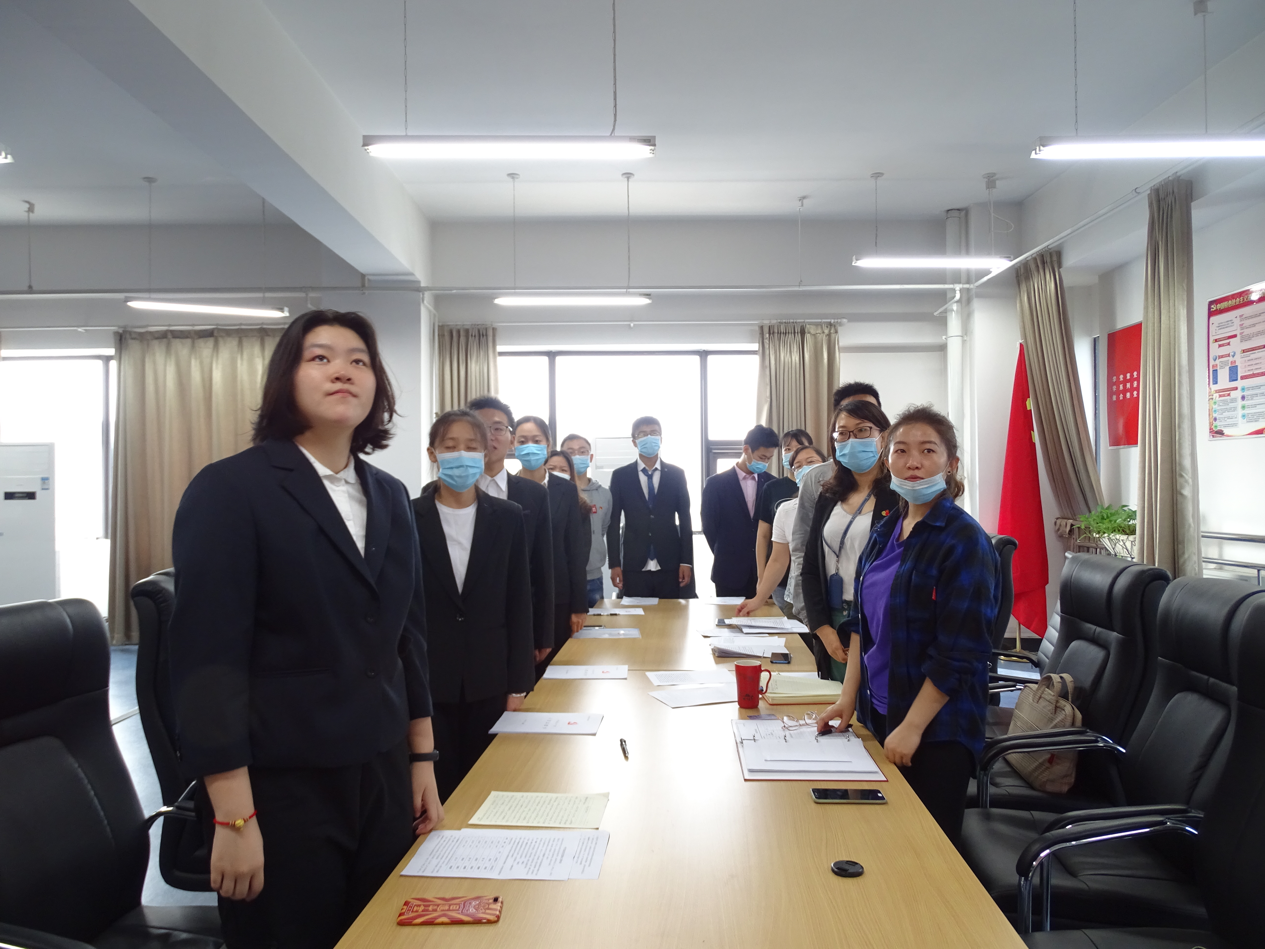 陈林林等六名同学在党旗下庄严宣誓,表示会在今后的学习工作中,坚定目标、严格要求自身,努力改正现有不足,不忘初心跟党走,积极向优秀共产党员学习,用实际行动来践行自己的入党誓言,使自己无愧于中共党员这一光荣称号。