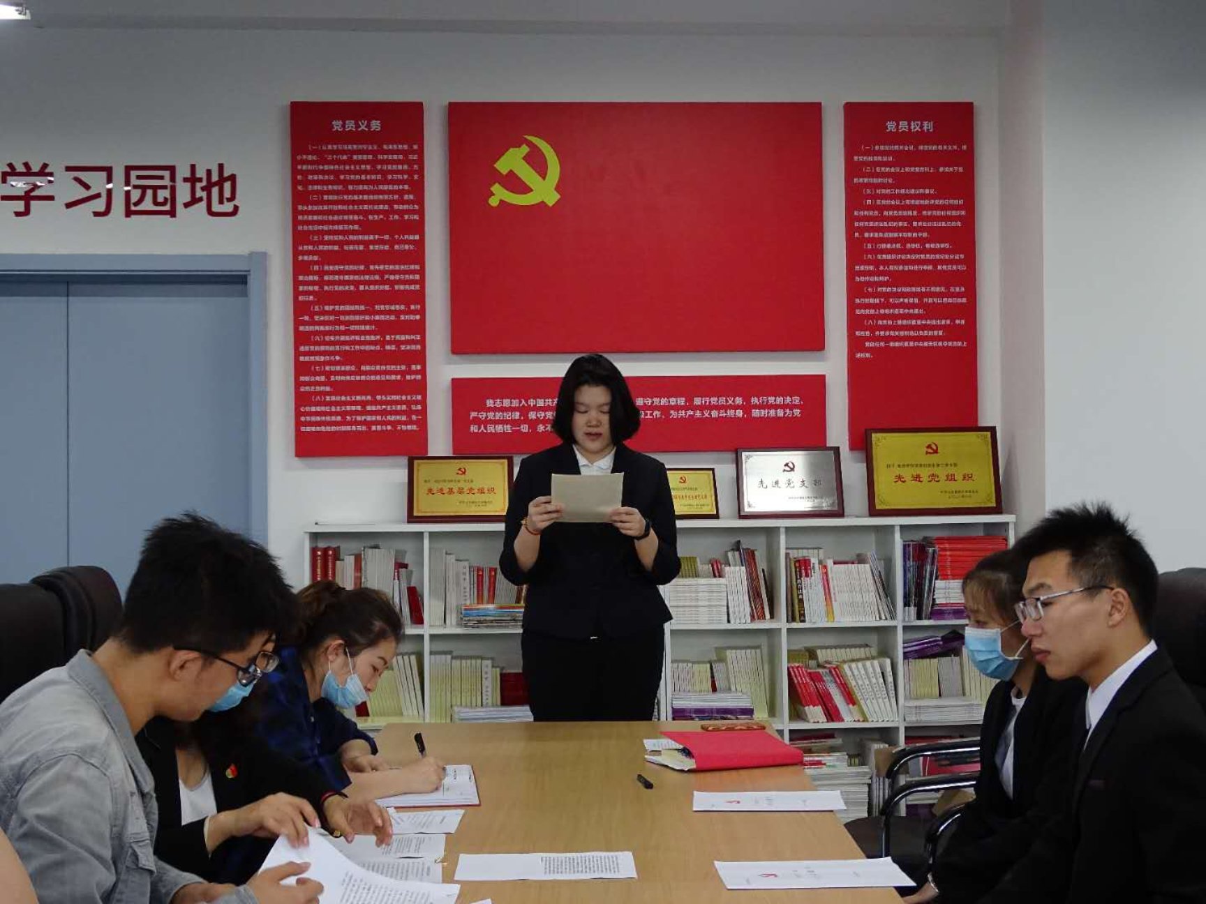 首先由张靖媛同志宣读自己的转正申请,详细汇报了自己在预备期间的表现,并对自己在思想,学习和工作上的进步与不足做了认真的总结。经正式党员以无记名投票方式进行表决后一致通过张靖媛同志如期转为正式党员的决定。