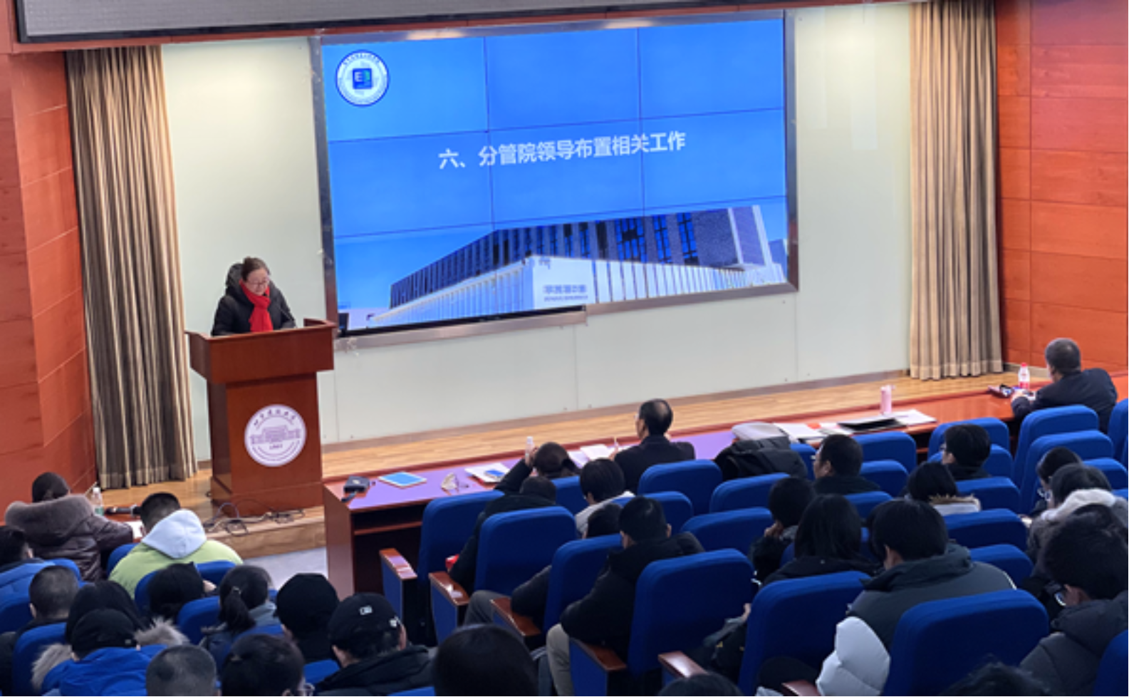 李云山通报了学院2023年工会经费与党建经费的支出情况,领学了《北京市安全生产条例》,强调每位教职工都是安全责任人。他号召全体教师新的一年继续努力,在教学、科研、人才培养等方面继续争创佳绩,为学院发展贡献力量。