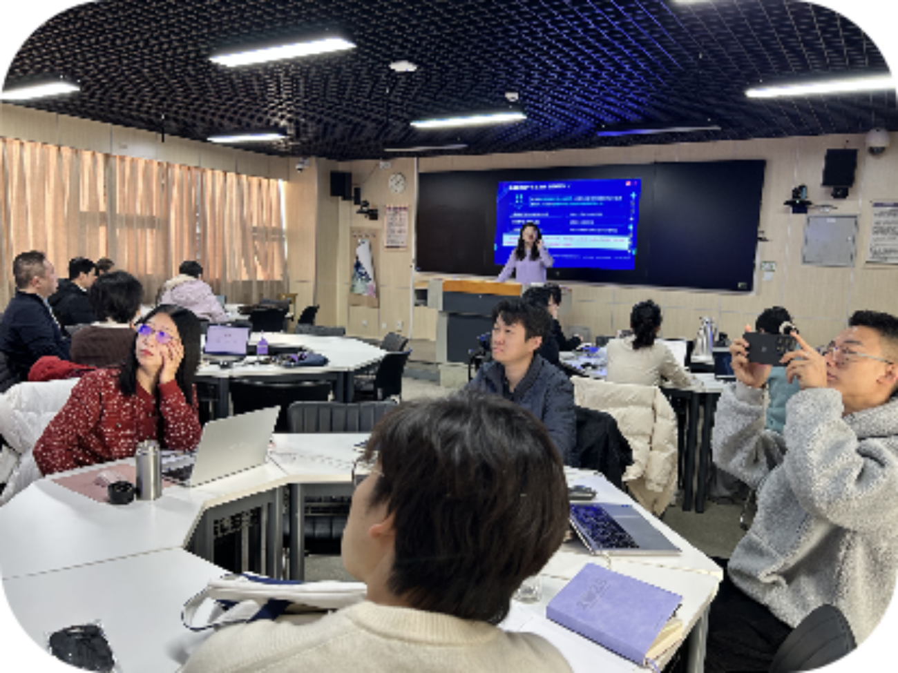 刘宏玮副院长以“人工智能引领高校课程建设智慧化创新发展”为主题,对智慧课程建设过程中创建任务引擎、搭建智能体、绘制知识图谱三大模块进行了详细的介绍和案例展示,带领老师们近距离的感受了智慧课程对于培养学生的自我管理能力、实现个性化自适应学习,以及拓展更深更广的学习资源过程中发挥的强大作用。