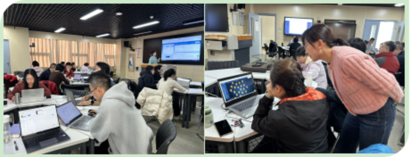 随后,高立枝老师带领现场教师,从实践的角度出发,以各位老师自己的课程为例,一步步体验了课程建设过程中用到的任务引擎、AI工作台、AI助教、知识图谱等模块的操作,各位参会老师分别就自己课程建设过程中遇到的问题卡点等进行了交流分享。