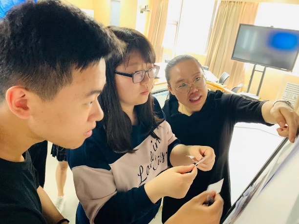 在对大家的发言进行总结之前,王晓辉老师和阚帅老师组织师生一起完成了一幅拼图,每人手里拿的都是整张拼图中不可缺少的一部分,只有所有人都有一个明确的目标图形才能更快更好地完成拼图。之后,结合大家的发言,王晓辉老师强调每一位老师和同学都是学校发展和专业发展不可缺少的一份子,只有大家以优良的教风、严谨的学风和过硬的作风承担起自己应该承担的责任,才能在新时代新征程中不断地取得新发展。
