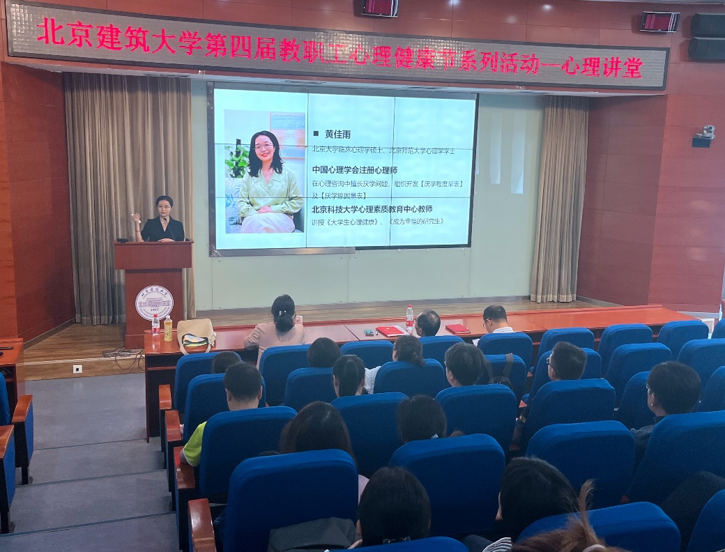 第四届教职工心理健康节系列活动——心理讲堂暨电信学院教师教学能力提升系列活动之二,在学E报告厅举行,邀请到中国心理学会注册系统注册心理师、北京科技大学心理素质教育中心专职教师黄佳雨开展“心理学在课堂管理中的应用”讲座,电信学院、土木学院教职工参加了此次活动。活动由电信学院副院长马鸿雁主持。
