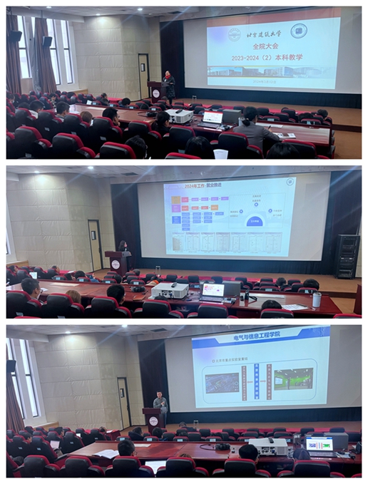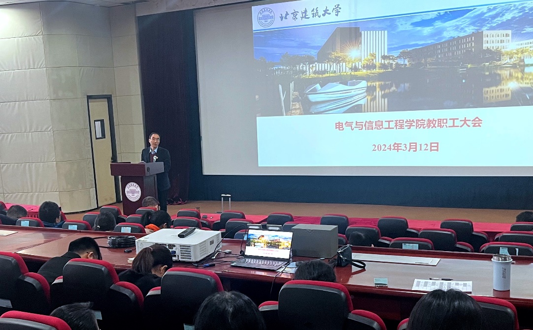 副院长马鸿雁就审核评估整改、本科生培养方案修订等工作进行部署,并再次强调要加强教学工作的规范性;党委副书记田芳通报了2023年学生工作取得成绩,并对就业推进、学风建设、创新创业等2024年重点工作做规划安排;副院长赵光哲介绍了2023年度科研指标完成情况及2024年科研目标和重点工作,对北京市重点实验室申报工作进行动员,并通报了学科建设和研究生工作情况。