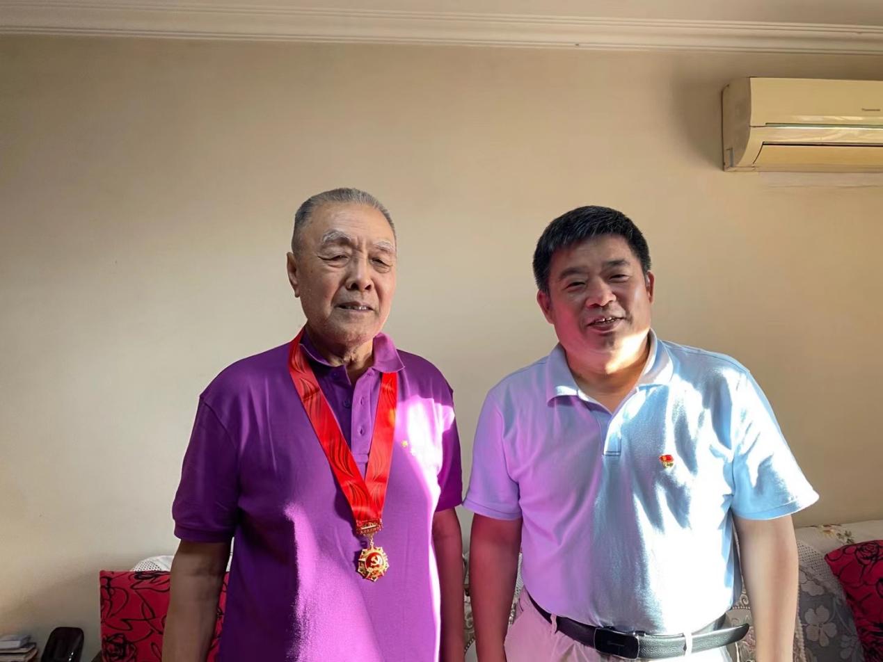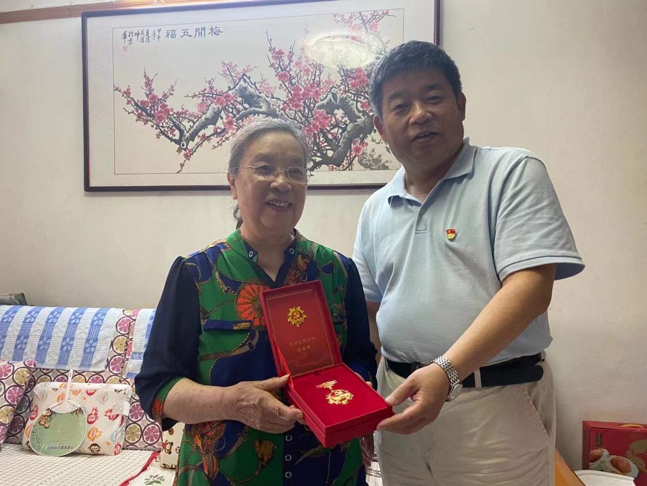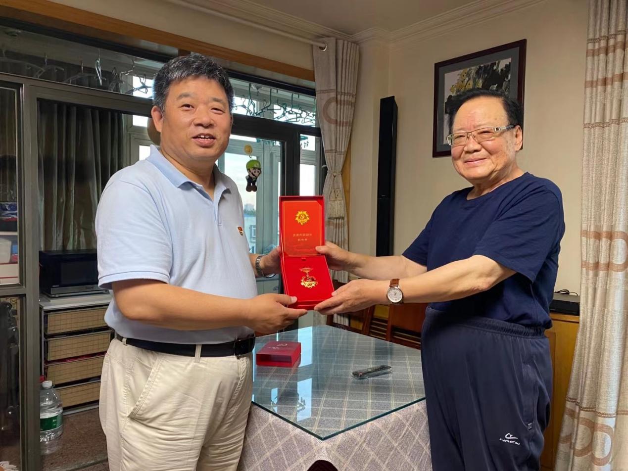 6月17晚,电气与信息工程学院党委经过提前沟通,结合走访慰问党员活动,采用上门颁发形式,为光荣在党50年党员颁发纪念章。院长郭茂祖(主持党委工作)亲自带队,党委副书记田芳、党政办公室主任师洪洪随行,共同将“光荣在党50年”纪念章送至家中。