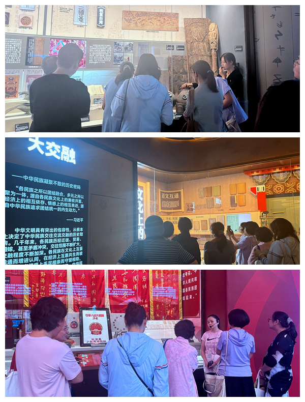 为体验博大精深的中华优秀传统文化,感悟中国共产党百年民族工作伟大成就,2024年6月11日上午,电信学院分工会组织教职工赴民族文化宫参观铸牢中华民族共同体意识文物古籍展。