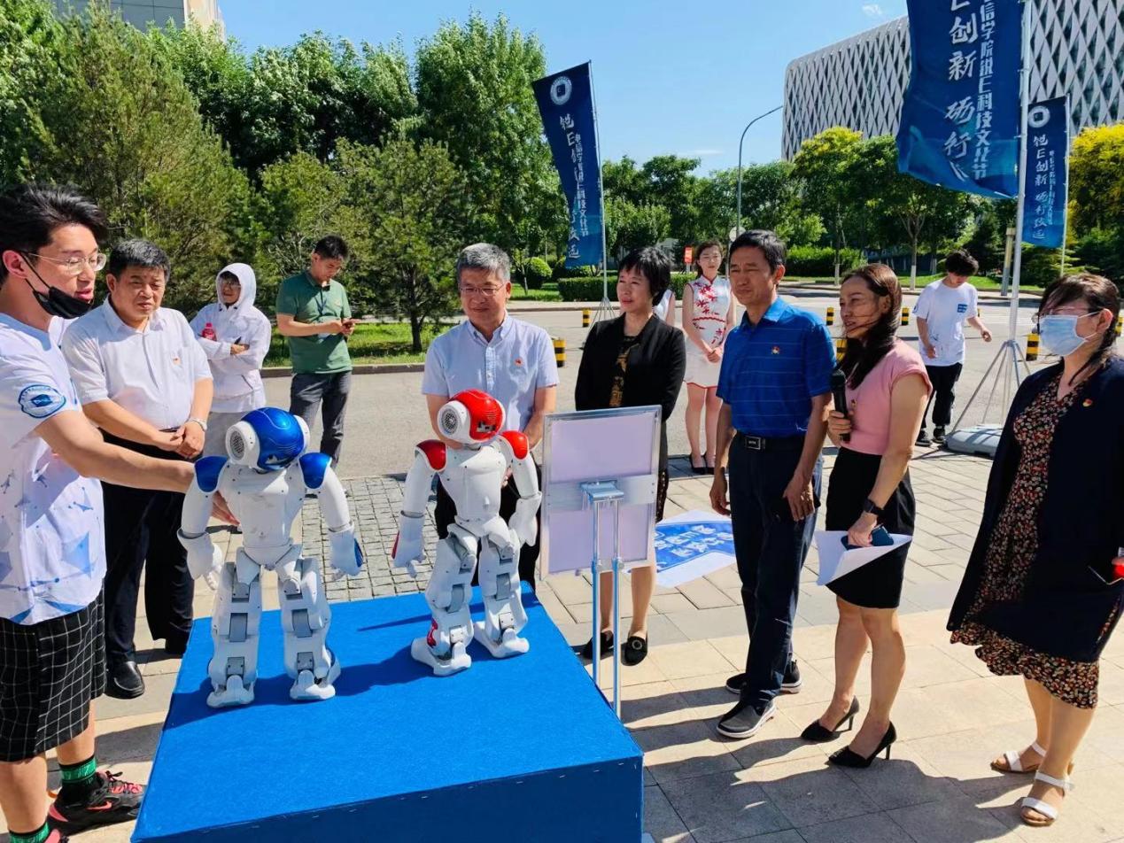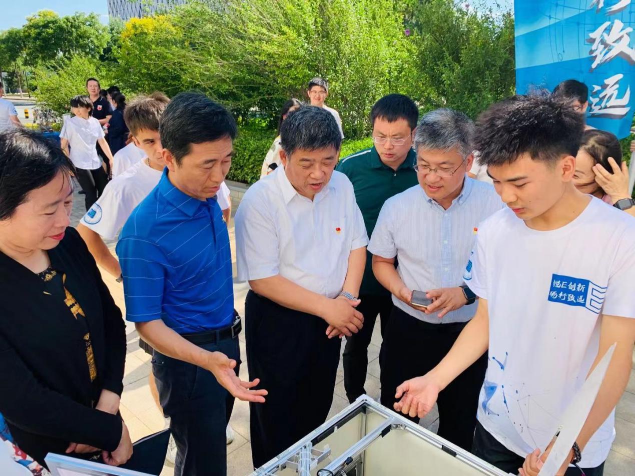 随后,师生们一同参观了现场的学生科创作品展:足球机器人、助老机器人、循迹小车、舞蹈机器人、仿人散打机器人、格斗机器人、智能车—越野、智能车—基础四轮、百度人工智能车—封狼居胥、水下管道智能巡检机器人、智能物流搬运、智能无人机、仿人机器人等一系列学生个人或团队的科创成果,并与负责人讨论交流作品的功能及创作想法。与会嘉宾对学生自主创新的各类作品给予了很高的评价,同时也提出了更高的期望。