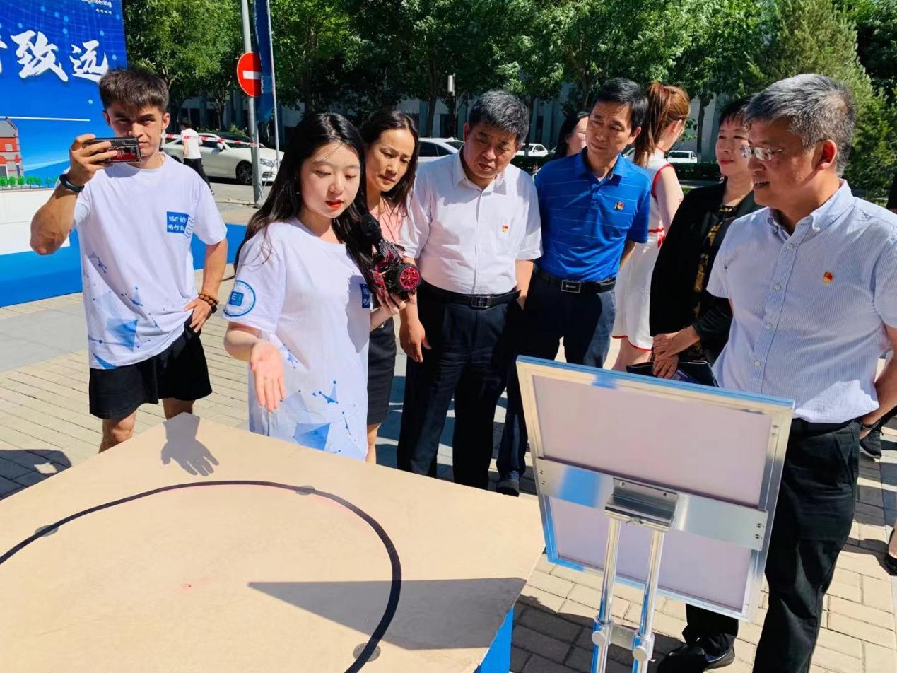 内场会议结束后,师生们一同移步至科技节外场环节。首先由学校党委党委白莽和电信学院院长郭茂祖一起为电信学院师生共同设计制作的“一大会址智能照明声光电模型”揭幕,红布徐徐揭开,电信学院“锐E创新,砺行致远”主题科技文化节也随之拉开帷幕,开启了电信学院科技创新的新的篇章。