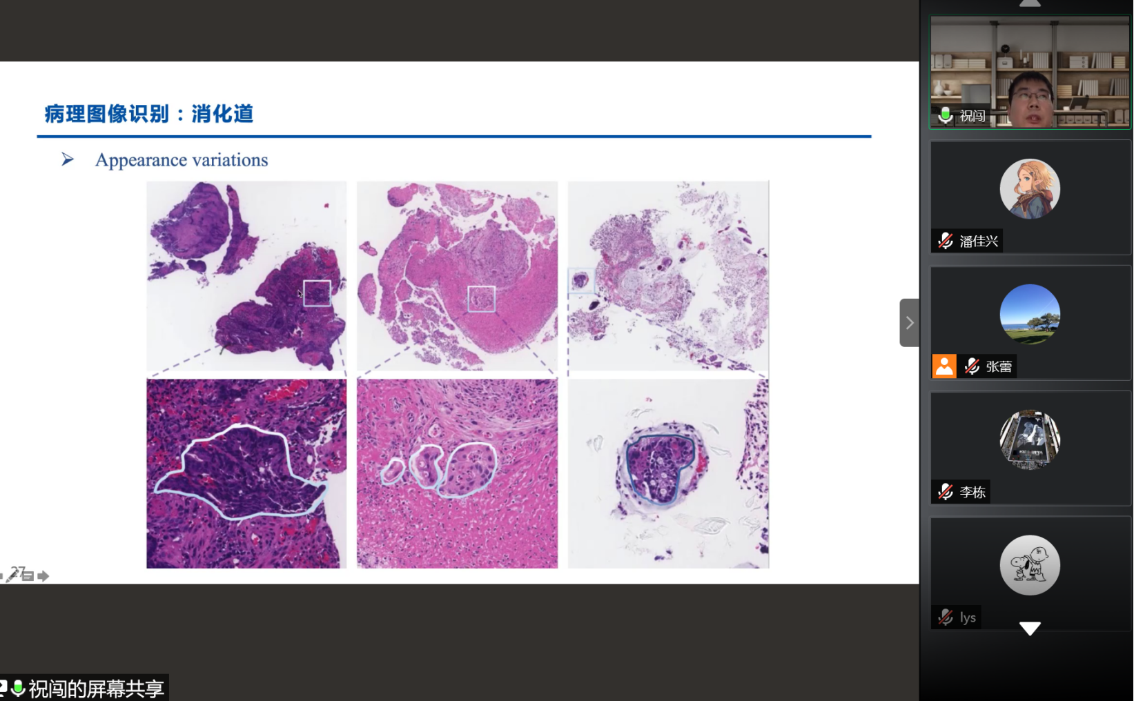 祝老师以“深度学习在医疗辅助诊断中的应用研究”为题,结合自己近年来从事的科研情况,主要从“深度学习的发展”、“病理图像分割”、“医疗影像辅助判断”和“医疗领域新进展”四个方面进行了介绍。