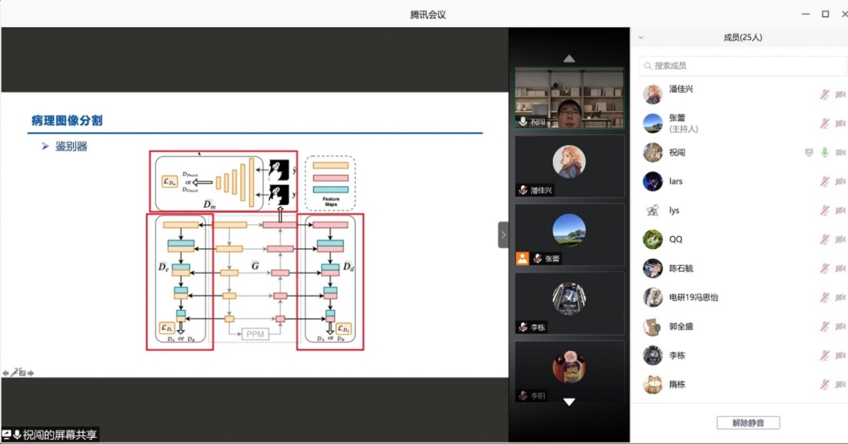 报告结束后,针对病理图像分割中的具体问题和深度学习技术未来发展方向等相关问题,祝老师与师生进行了充分交流,大家很受启发,开拓了研究思路,为开展相关研究奠定了基础。