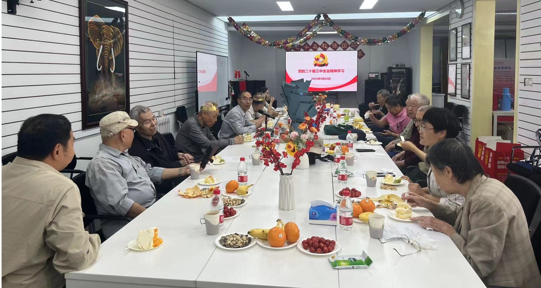李云山代表学院祝班成、李惠昇两位老师生日快乐,祝所有退休老师身体健康,生活幸福,事事如意。大家合唱《生日快乐》歌,伴随着祝福声,两位寿星许愿、吹蜡烛、切蛋糕,满满的仪式感。接着李云山宣讲了党的二十届三中全会精神,介绍了学院在教学、科研、师资队伍建设、学科建设、人才培养等方面取得的成果及下一阶段工作重点,并希望老同志们继续支持学院发展,积极建言献策。参加活动的退休老师对学院取得成果倍感骄傲,衷心祝愿学院越办越好,并提出了意见建议。