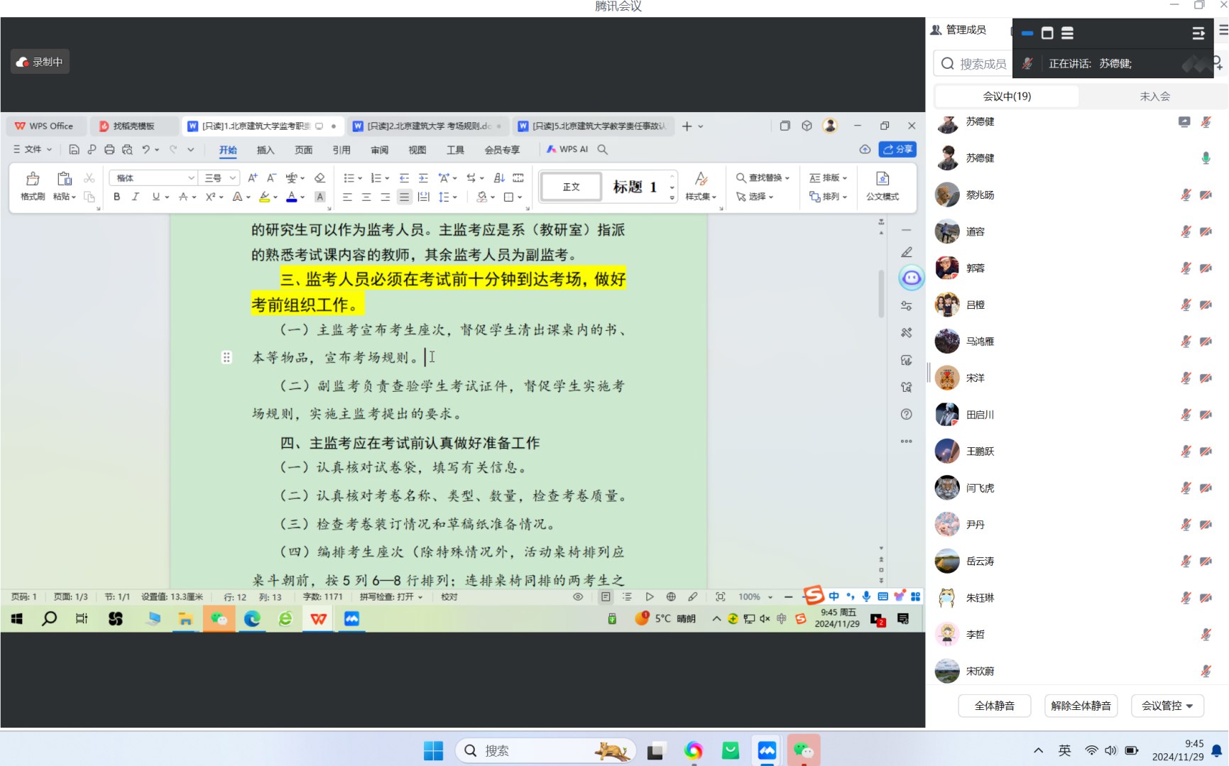 教学办公室针对近3周有监考任务的教师,组织专项考务培训。邀请学工老师,结合经典案例,为大家介绍当前学生考试作弊新形式新手段,强调监考过程中重点防范环节;教务老师结合《雏鸟app 关于进一步加强考试管理、严肃考风考纪的通知》和《电气与信息工程学院教师教学规章指南》相关内容,对试卷制定印刷、考场规则、监考职责、事故认定等进行了详细的解读,并再次强调发生考场违纪行为后正确的处理方法,确保教师有效落实监考纪律,切实加强考试全过程管理。