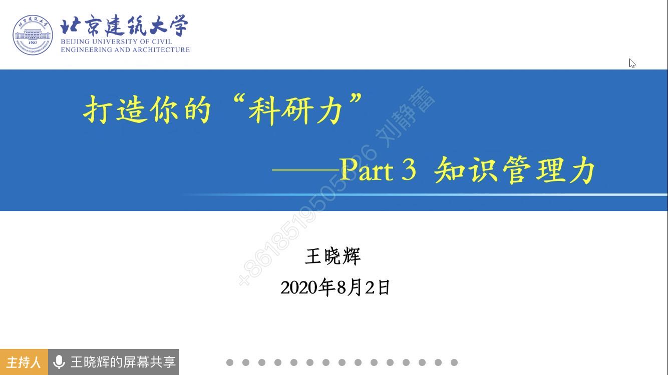 在这个因疫情而特殊的加长假期中,电信学院为研究生们举办了题为《打造你的“科研力”》的四期学术讲座。讲座由学院副教授、硕士生导师王晓辉老师主讲。王晓辉老师是美国劳伦斯伯克利国家实验室访问学者,多次主持国家、住建部、北京市等重点项目,并积极投身移动云课程、在线视频公开课的教育教学改革项目中。