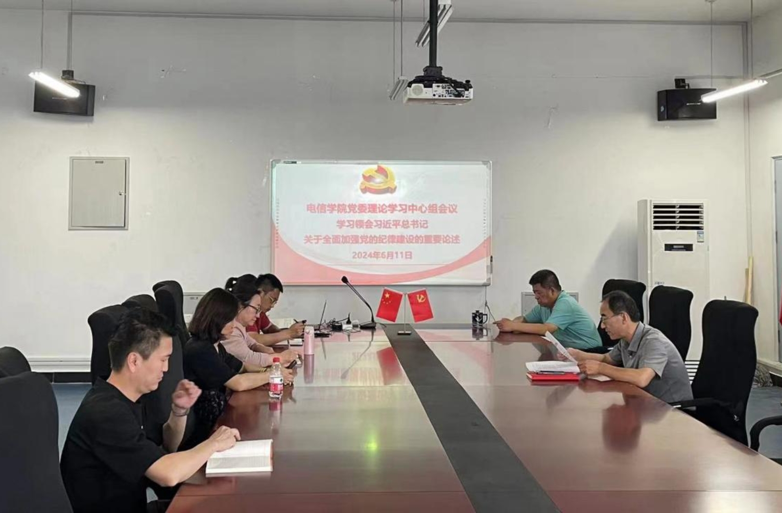 6月11日下午,电信学院党委理论学习中心组开展集体学习研讨,认真学习领会习近平总书记关于全面加强党的纪律建设的重要论述。