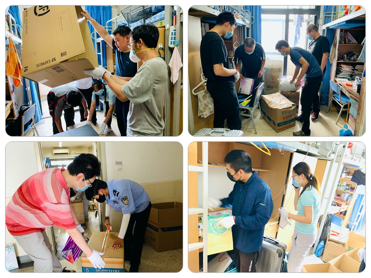 为了确保打包工作顺利进行,学工队伍加班加点落实行李打包前的准备工作。