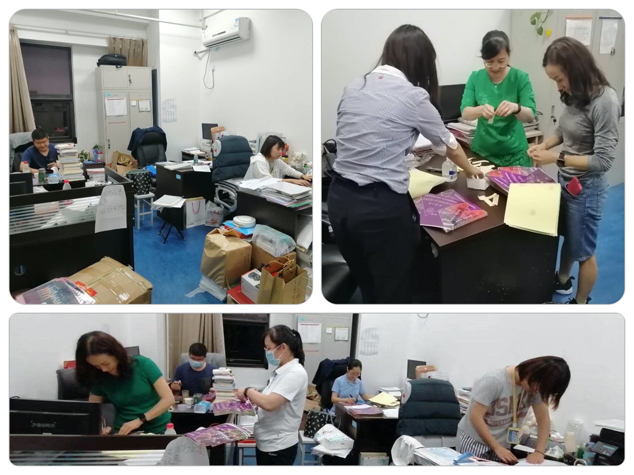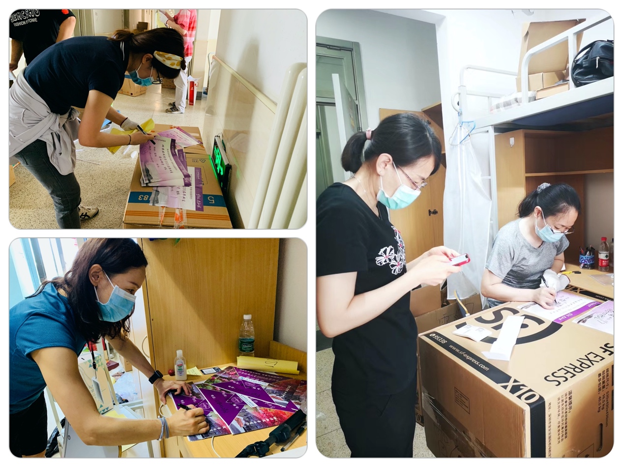 整理、封装、录入、检查、确认,受过完整流程培训的老师们一丝不苟的推进每一个环节。炎炎夏日,在密封了半年之久的宿舍楼里,老师们汗流浃背,却依旧没有减慢打包的速度。