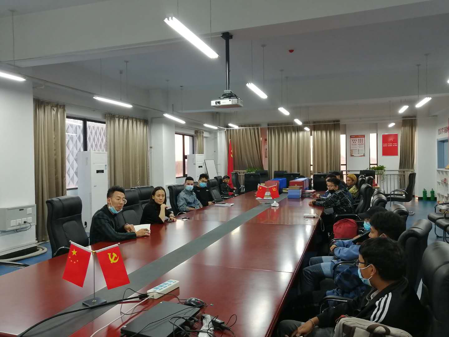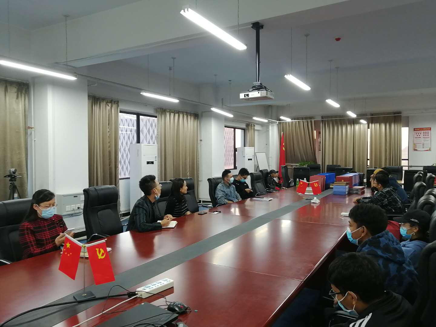 首先,大家畅谈开学以来的学习生活等方面的感受,随后师生热烈交流,座谈。新入学的同学分享自己从高中生活到大学生活过度的感受,而高年级学长分享自己大学这几年的学习方法和经验。针对少数民族同学基础薄弱,学习进度缓慢等问题,阚帅老师协助制定学业提升方案,联系班级学习委员进行课后辅导,安排学生党员一对一课后辅导等方式帮助同学们打好基础,提高学习成绩。