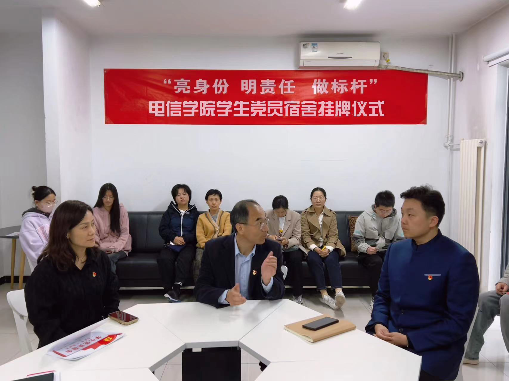 “党员宿舍”挂牌,对于学生来说,不仅仅是荣誉,更是激励和鞭策,电信学院将以此次活动为契机,不断提升学生党员的党性修养和思想觉悟,引导广大学生党员“亮身份、明责任、做标杆”。发挥“头雁”作用,并坚持发挥学生宿舍育人阵地作用,强化思想政治引领,充分落实立德树人根本任务。