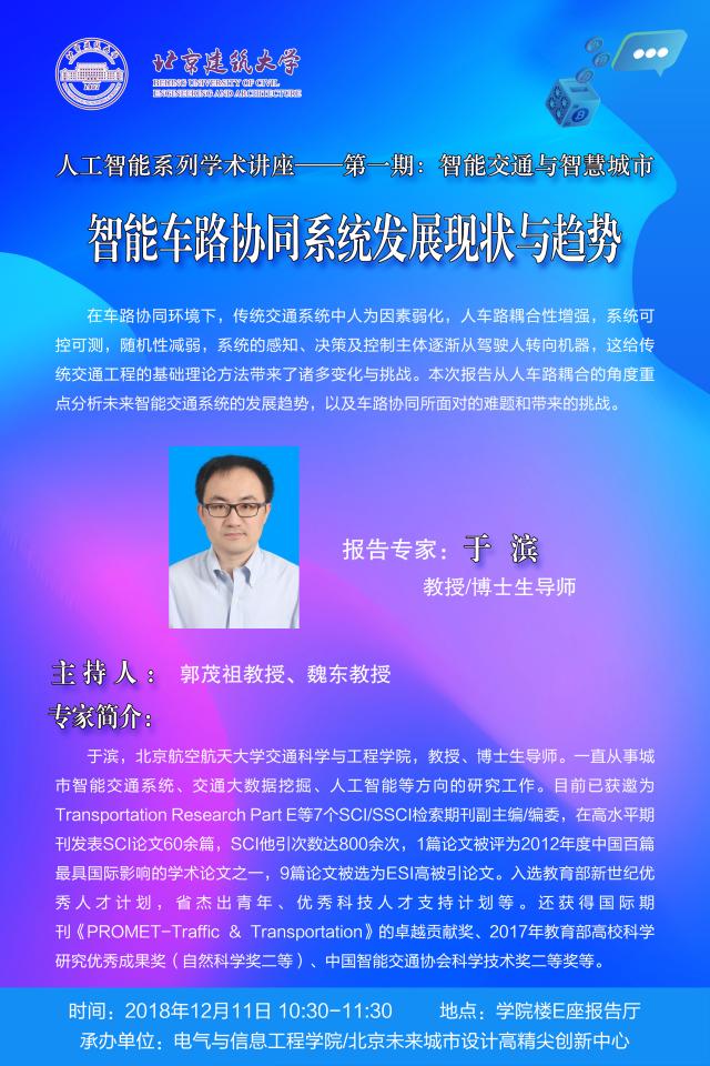 【学术讲座】人工智能系列学术讲座——第一期:智能交通与智慧城市