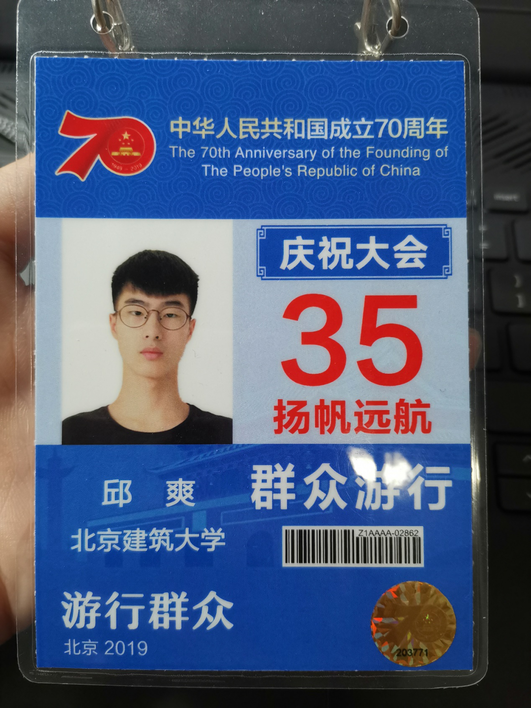 大二的时候就开始组队参加比赛了。和崔彦然、刘伟峰去了合肥、南京,边比赛边欣赏祖国大好河山。也就在这个时候,突然觉得打比赛挺好的。不是为了什么游山玩水,而是真的体会到参加科技竞赛对我能力的培养和锻炼。大二的时候,我也十分有幸参加了七十周年阅兵仪式的群众游行方阵。当我真正踏上天安门前的地砖的时候,血液汹涌血脉膨胀,我终于明白了我肩头也要扛起一些东西。